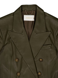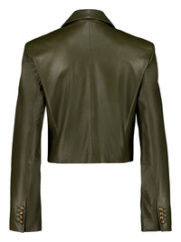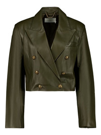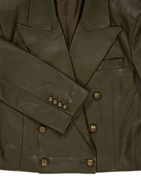 double-breasted leather blazer Highlights - Olive green - Double-breasted - Button fastening - Peak lapels Imported Composition Leather 100% Washing instructions Read Manufacturer Guidelines