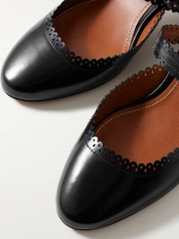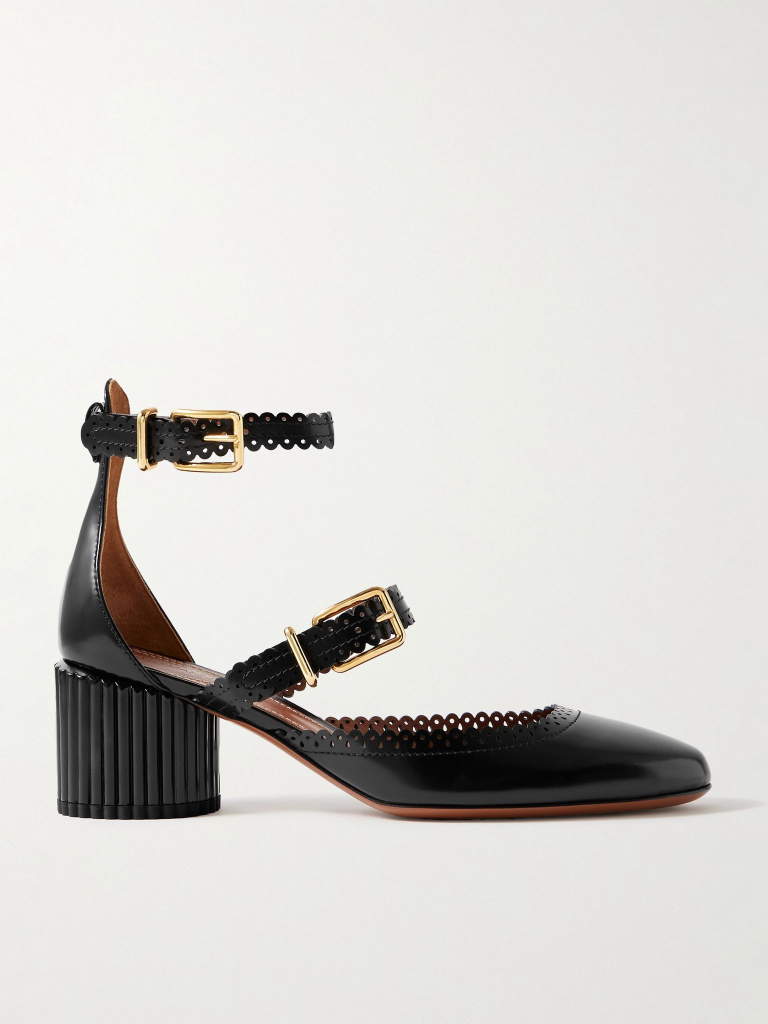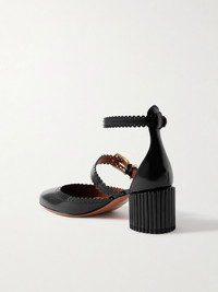 Zimmermann's 'Eddie' pumps are designed with so many unique elements, like laser-cut scalloped trims and a ribbed block heel inspired by architectural columns. Made from smooth leather, they have rounded toes and buckled Mary Jane straps. Size & Fit - Fits true to size, take your normal size - Only available in full sizes, go up to the nearest whole size if you take a half size - French sizing Details & Care - Heel measures approximately 55mm/ 2 inches - Black leather (Calf) - Buckle-fastening straps