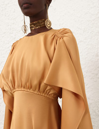 ITEM DETAILS The Eden Cascading Mini Dress in Dark Tea from our Fall 2024 Collection, In Illustration. A mini dress featuring gathered under bust, ruched shoulder detail and cape style sleeves. - Mini dress - Gathered under bust - Ruched shoulder detail - Cape style sleeve featuring an open back slit - Invisible centre back zip on skirt Runway: This style was featured on the Fall 2024 Runway. Style Code: 1408DF242 SIZE DETAILS 0P 0 1 2 3 4 Length 33.5 35.5 36 36 37 38 Waist 30 31.5 34 35.5 38 39.5 Hip 49.5 51 53.5 55 57.5 59 Fitted through the waist and hips Relaxed through legs This garment fits true to size Available in size 0P, suited to clients who are under 5'3"/ 160cm Model is 5'9.5"/178 cm, bust size 32C/10C and wears a size 0 Item measurements are in inches. CARE INSTRUCTIONS Main: 100% viscose Dry clean code f (hydrocarbon only), inside out in a protective bag Remove detachable trims and accessories prior to cleaning Cover to protect hardware Cool iron with protective cloth Do not spot clean Always check the garment care label for specific care instructions.