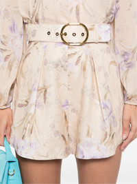 Eden shorts Highlights - Beige/multicolour - Linen/flax - Concealed rear zip fastening - Buckle fastening - All-over floral print - Belt loops - Detachable and adjustable waist belt - Two side inset pockets - Pleat detailing - Pressed crease - This item contains at least 50% materials which are certified or widely recognised as having a lower environmental impact through production and/or manufacturing processes that reduce water consumption and the use of harmful chemicals, or re-use by-products of the production process. - Learn more about what makes a product conscious on our conscious criteria page Imported Composition Lining: Cotton 100% Outer: Linen/Flax 100% SIZE & FIT Model measurements Height 5 ft 10 in(1.78 m) Bust/Chest 33.46 in(85 cm) Hips 35.43 in(90 cm) Waist 23.22 in(59 cm) FittingInformation Designed for a loose fit, offering comfort and movement when worn Made from a midweight non-stretch fabric
