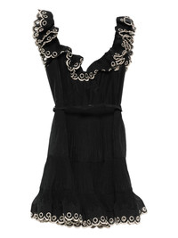 embroidered mini dress Highlights - Black - Frilled trim - Embroidered detail - Belt detail - Mini length Imported Composition Outer: Polyester 100% Lining: Cotton 100% SIZE & FIT Model measurements Height 5 ft 11 in(1.8 m) Bust/Chest 32.28 in(82 cm) Hips 36.22 in(92 cm) Waist 25.19 in(64 cm) Washing instructions Dry Clean Only