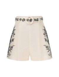 ITEM DETAILS The Flat Front Short in Cream Floral from our Resort 2025 Collection, Crush. A high waisted linen short featuring side seam pockets and a removable buckle belt. - Linen short - Placement print throughout - Invisible zip at centre back - Removable buckle belt - Deep tucks at front Style Code: 2885AR25R SIZE DETAILS 0P 0 1 2 3 4 Length 37 39 40 41 41 42 Waist 64 67 72 77 82 87 Fitted high waist This garment fits true to size Available in size 0P, suited to clients who are under 5'3"/ 160cm Model is 5'9.5"/178 cm, bust size 32C/10C and wears a size 0 Item measurements have been rounded to the nearest cm CARE INSTRUCTIONS Main: 100% linen, lining: 100% cotton Dry clean code f (hydrocarbon only), inside out in a protective bag; Remove detachable trims and accessories prior to cleaning; Cover to protect hardware; Cool iron with protective cloth; Do not spot clean; Always check the label or care card for specific care instructions.