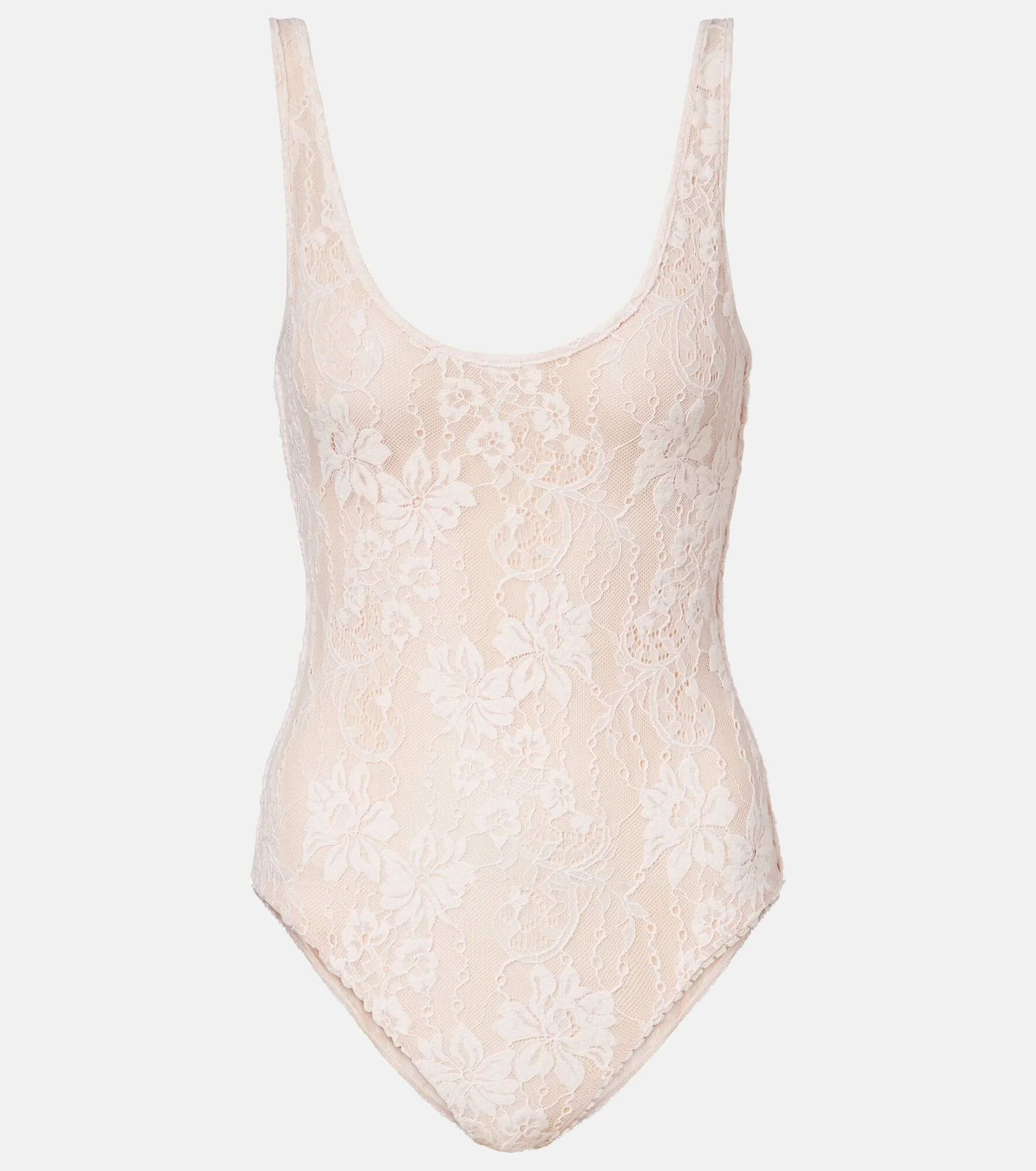 This Zimmermann bodysuit is crafted from intricate floral lace with mesh lining, creating an ethereal and delicate look. This design features a flattering scoop neckline and a matching low scoop back for added allure. Product Details - Material: 90% polyamide, 10% elastane - Care instructions: hand wash - Made in China - Designer color name: Light Pink - Item color: pink - Lining: 81% polyester, 19% elastane - Item number: P01101516 Size & Fit - True to size - Fitted - Stretchy fabric - Medium-cut leg - The model seen in the picture is 178cm-5'10" and wearing a size 0