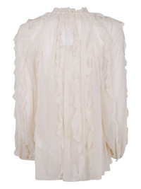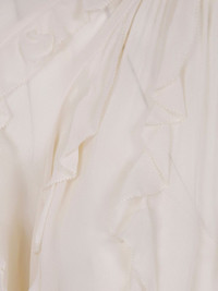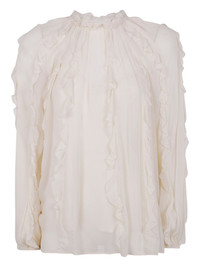 ruffled high-neck blouse Highlights - Cream - High neck - Ruffled details - Long sleeves - Shoulder ruffles Imported Composition Viscose 100% Washing instructions Read Manufacturer Guidelines