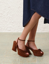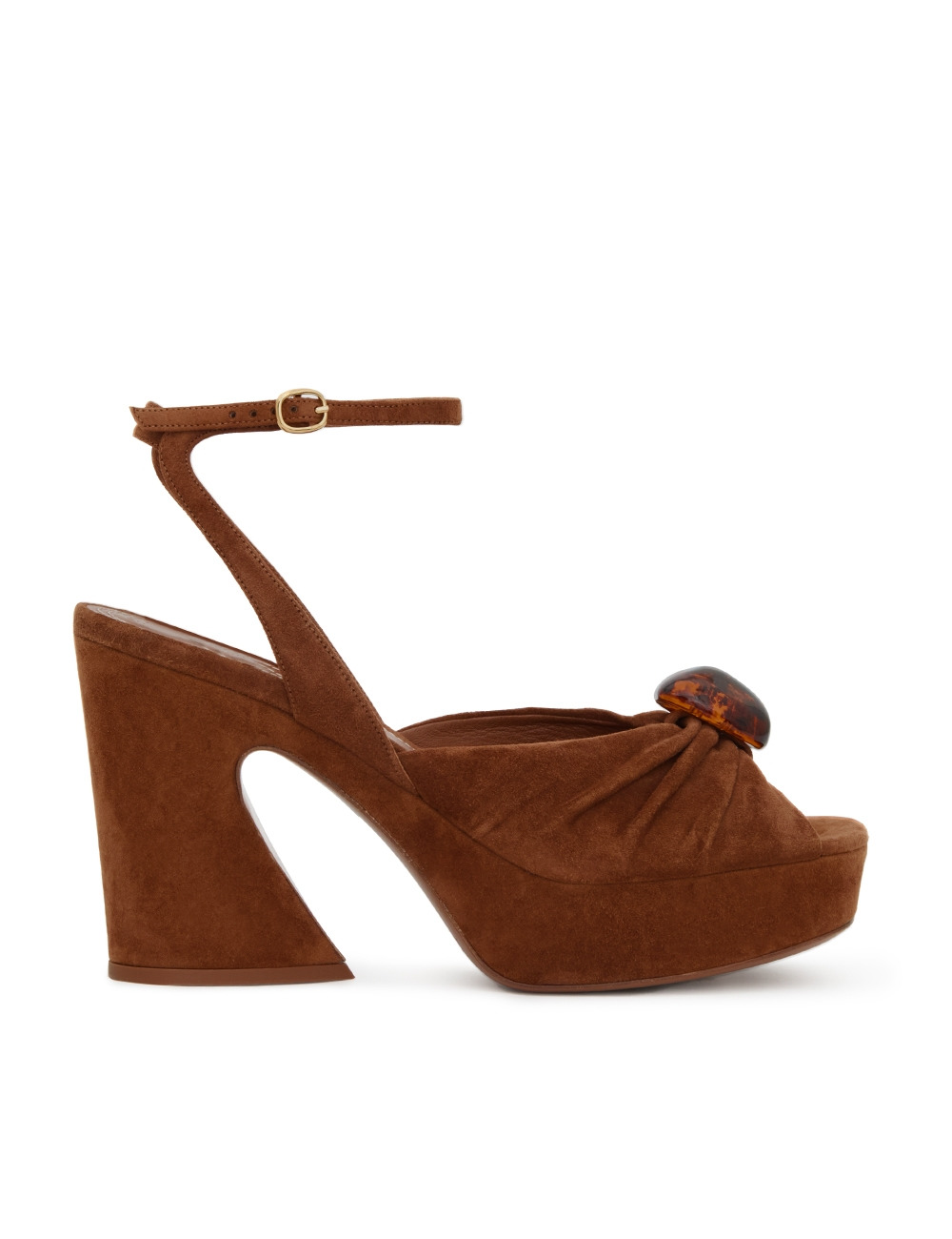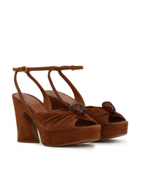 ITEM DETAILS The Gleam Sandal 120 in Hazelnut from our Fall 2025 Collection, Hypnotic. A casually refined take on everyday styling, featuring Gleam's signature gathering for added depth and texture, and finished with pebble hardware for a refined detail. - Suede platform sandal - Made in Italy - Gathered detail on upper with adjustable ankle strap - Square toe - 120mm block crescent heel Style Code: 5453FF25A1 SIZE DETAILS This shoe fits true to size. CARE INSTRUCTIONS Main: 100% goat leather; lining: 100% sheep leather; outsole-suola: 100% calf leather Handcrafted from genuine suede, this item may discolor or stain if exposed to humidity or atmospheric conditions Use a soft-bristled brush to remove soil and a stain repellent Avoid contact with light, heat, water, oils, perfume, and cosmetics Store in a dry environment in the original dust bag Always check the label or care card for specific care instructions.