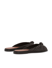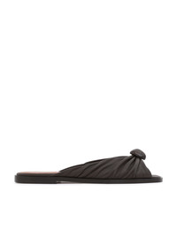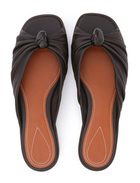 ITEM DETAILS The Gleam Slide in Espresso from our Summer Swim 2025 Collection. A leather slide sandal featuring heavy gathering at the front shoe with a statement pebble hardware design. - Leather sandal - Soft square toe - Pebble detail at front shoe - Made in Italy Style Code: 1506FS25A2 SIZE DETAILS This shoe fits true to size. CARE INSTRUCTIONS Lining: 100% leather; outsole-suola: 95% leather, 5% thermo-plastic-rubber; upper 1: 100% leather Your handcrafted item is made from high-quality leather which features natural variations in tone, grain, and texture. Colours may fade with exposure to light and heat, and humidity can lead to colour transfers onto lighter fabrics. Protect your item from direct contact with water, solvents, oils, perfumes, and cosmetics which can cause irreversible damage. Store in a dry environment in the original dust bag Always check the label or care card for specific care instructions.