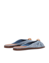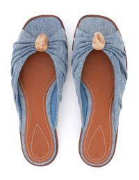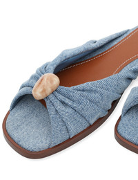 ITEM DETAILS The Gleam Slide in Indigo from our Summer Swim 2025 Collection. A denim slide sandal featuring heavy gathering at the front shoe with a statement pebble hardware design. - Denim sandal - Soft square toe - Pebble detail at front shoe - Made in Italy Style Code: 2952FS25A2 SIZE DETAILS This shoe fits true to size. CARE INSTRUCTIONS Lining: 100% leather; main: 100% cotton; outsole-suola: 95% leather, 5% thermo-plastic-rubber Textile care To maintain optimal condition, apply a pfas-free waterproofing spray to the entire item and spot-clean stains with mild detergent; Rinse thoroughly to remove any soap residue, and air dry away from direct sunlight; If needed, gently brush with a soft brush Please note, the material may lose some stiffness over time For printed materials, pigments may transfer through fibers, so handle with care Avoid contact with pigmented materials to prevent staining. Store in a dry, moisture-free environment in its dust bag Always check the label or care card for specific care instructions.