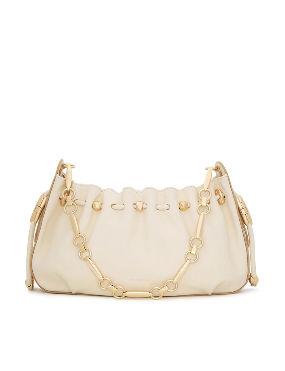 ITEM DETAILS The ultimate in day-to-night dressing, the Halcyon Clutch is defined by its ruched silhouette, complemented by decorative gold beads that evoke pebbles collected on the shore. Crafted from soft calfskin leather, the clutch features a bespoke surfboard-inspired gold chain, highlighting the elegant fusion of the Australian surfing culture and European equestrian style. - Soft calfskin leather - Cotton canvas lining - Shoulder, cross-body and hand-carry - Metal shoulder strap - Detachable and adjustable leather strap - Internal slip pocket - Made in Italy Style Code: 3013XF25A1 SIZE DETAILS Length: 13.5 Height: 6.5 Depth: 4.5 Handle Drop: 10.5 Strap Drop: 19.5-21.5 Item measurements are in inches CARE INSTRUCTIONS Main: 100% calf leather; lining: 90% cotton, 8% polyester, 2% resin Your handcrafted item is made from high-quality leather which features natural variations in tone, grain, and texture. Colours may fade with exposure to light and heat, and humidity can lead to colour transfers onto lighter fabrics. Protect your item from direct contact with water, solvents, oils, perfumes, and cosmetics which can cause irreversible damage. Store in a dry environment in the original dust bag Always check the label or care card for specific care instructions.