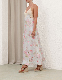 ITEM DETAILS The Halliday A-line Midi Dress in Blue Watercolour Floral from our Summer Swim 2024 Collection. A linen midi dress featuring scallop lace detailing at front bodice and a low back with criss-cross straps. - Linen midi dress - A-line silhouette - Fixed rouleau straps - Invisible centre back zip closure - Side seam pocket - Criss-cross back straps with toggle ends Style Code: 9835DSS241 SIZE DETAILS 0P 0 1 2 3 Length 94 103 103 103 103 Bust 42 44 48 50 52 Straight fit throughout This garment fits true to size Model is 5'9.5"/178 cm, bust size 32C/10C and wears a size 0 Item measurements have been rounded to the nearest cm. CARE INSTRUCTIONS Main: 100% linen Contrast: 100% cotton Exclusive of trims Dry clean only code p Cool iron Do not spot clean Always check the garment care label for specific care instructions.