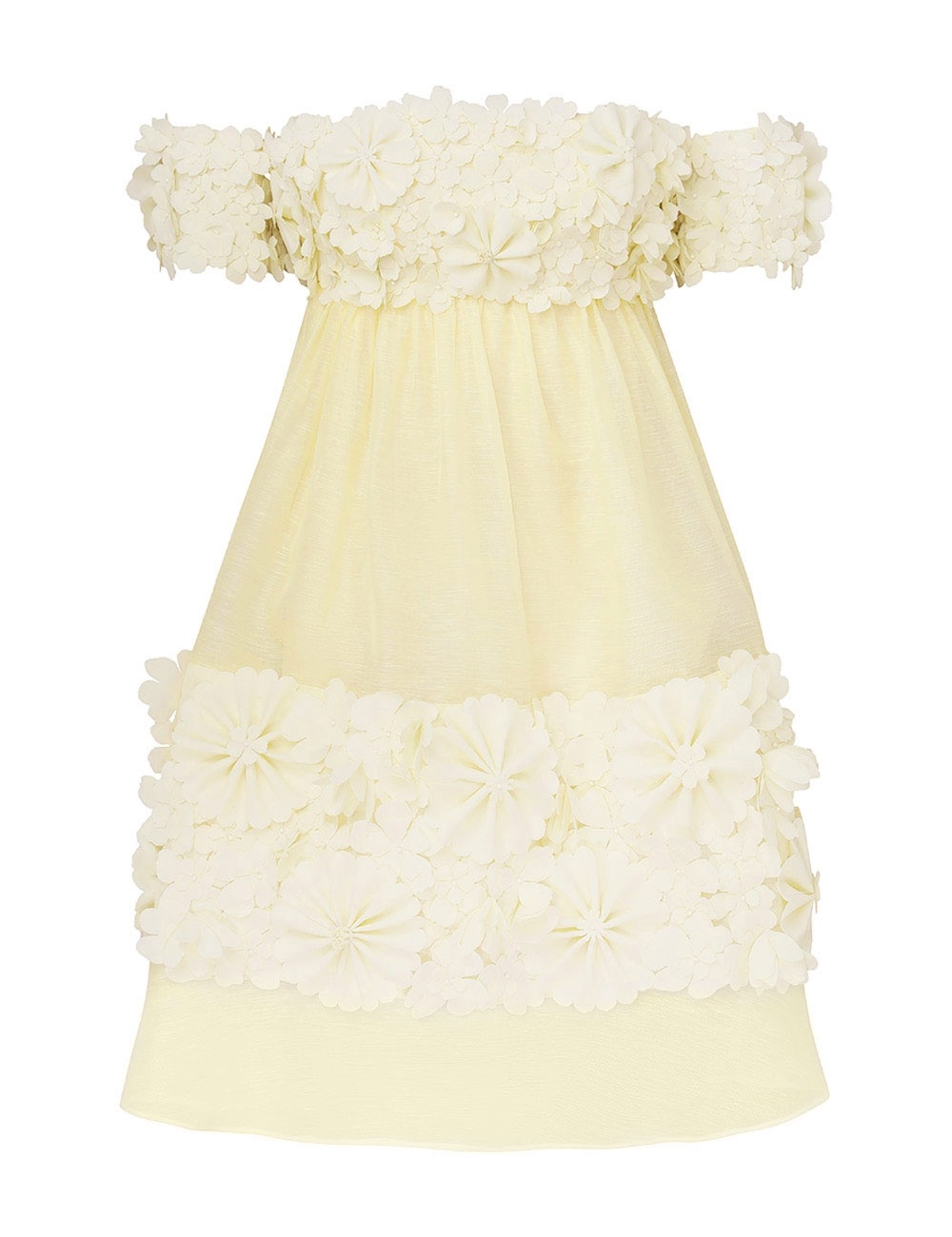 ITEM DETAILS The Harmony Applique Flower Mini in Lemon from our Spring 2024 Collection, Natura. A silk linen organza mini dress featuring a small flower trim on bodice and sleeves. - Strapless mini dress - Silk linen organza - Invisible zip at left side skirt - Boning in bodice side seams - Elasticated bodice with a hook and eye tape closure - Detachable straps Style Code: 1058DS242 SIZE DETAILS 0P 0 1 2 3 Length 69 72 72 74 75 Bust 73 78 83 88 93 Elasticated bodice for an easy fit This garment fits true to size Available in size 0P, suited to clients who are under 5'3"/ 160cm Model is 5'9.5"/178 cm, bust size 32C/10C and wears a size 0 Item measurements have been rounded to the nearest cm. CARE INSTRUCTIONS Main: 53% linen 47% silk Lining: 100% cotton Flower: 100% polyester Exclusive of trims Dry clean only code f (hydrocarbon) with protective bag Cool iron with protective cloth Light steam only Do not spot clean Turn garment inside out before dry cleaning Always check the garment care label for specific care instructions.