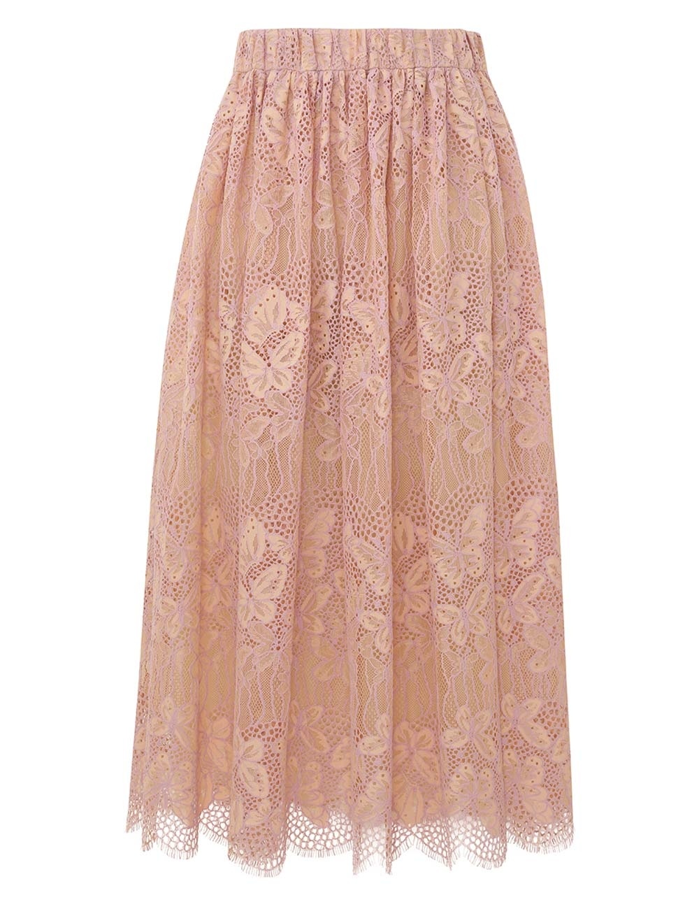 ITEM DETAILS The Harmony Lace Midi Skirt in Orchid from our Spring 2024 Collection, Natura. A lace midi skirt featuring an elastic waistband, side pockets and scalloped hem. - Lace midi skirt - Elastic waistband - Scalloped hem - Side seam pockets Style Code: 1116SS242 SIZE DETAILS 0P 0 1 2 3 Length 74 81 81 81 81 Waist 66 70 74 80 84 Elastic waist for an easy fit This garment fits true to size Available in size 0P, suited to clients who are under 5'3"/ 160cm Model is 5'9.5"/178 cm, bust size 32C/10C and wears a size 0 Item measurements have been rounded to the nearest cm. CARE INSTRUCTIONS Main: 55% linen, 45% silk Contrast: 52% linen, 48% silk Lining: 100% cotton Exclusive of trims Dry clean only code f with protective bag Cool iron with protective cloth Light steam only Do not spot clean Turn garment inside out before dry cleaning Always check the garment care label for specific care instructions.