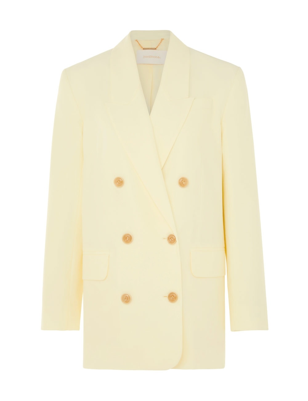 ITEM DETAILS The Harmony Poplin Jacket in Lemon from our Spring 2024 Collection, Natura. A cotton poplin double breasted jacket featuring jigger buttons and a stand collar. - Tailored jacket - Centre back seam with rear vent - Blind body and sleeves hem - Left front breast pocket - Front double welt pockets - Buttons on each sleeve Style Code: 9390JS242 SIZE DETAILS 0P 0 1 2 3 4 Length 73 79 80 80 81 82 Bust 100 106 110 116 120 126 Waist 98 102 108 114 120 124 Sleeve 60 64 65 66 66 67 Tailored fit This garment fits true to size Available in size 0P, suited to clients who are under 5'3"/ 160cm Model is 5'9.5"/178 cm, bust size 32C/10C and wears a size 0 Item measurements have been rounded to the nearest cm. CARE INSTRUCTIONS Main: 86% wool 14% cotton Lining: 73% viscose 27% silk Exclusive of trims Dry clean only code f with protective bag Cool iron with protective cloth Do not spot clean Cover and protect hardware Turn garment inside out before dry cleaning Always check the garment care label for specific care instructions.