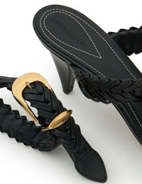 ITEM DETAILS The Helix Sandal 75 in Black from our Fall 2025 Collection, Hypnotic. Crafted in Italy, Helix features intricate braided weaving, elevated by custom gold hardware detailing. - Soft calfskin leather heel sandal - Woven braided upper - Round toe - Adjustable ankle strap - 75mm conical woven heel - Made in Italy Style Code: 4791FF25A1 SIZE DETAILS This shoe fits true to size. CARE INSTRUCTIONS Main: 100% calf leather; outsole-suola: 100% calf leather Your handcrafted item is made from high-quality leather which features natural variations in tone, grain, and texture. Colours may fade with exposure to light and heat, and humidity can lead to colour transfers onto lighter fabrics. Protect your item from direct contact with water, solvents, oils, perfumes, and cosmetics which can cause irreversible damage. Store in a dry environment in the original dust bag Always check the label or care card for specific care instructions.