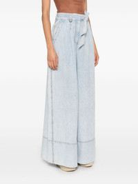 wide-leg cotton jeans Highlights - Light blue - Cotton - Denim - Contrast stitching - Belt loops - Detachable belt - Two diagonal pockets to the sides - Rear welt pocket - Wide leg - Front button and zip fastening Made in United States Composition Lining: Cotton 100% Outer: Cotton 100% SIZE & FIT Model measurements Height 5 ft 9 in(1.76 m) Bust/Chest 31.88 in(81 cm) Hips 35.43 in(90 cm) Waist 24.8 in(63 cm) Measurement FRONT RISE 12.99 in(33 cm) INSIDE LEG 31.49 in(80 cm) HIPS 43.3 in(110 cm) WAIST 25.19 in(64 cm) FittingInformation Designed with a wide leg cut, these jeans allow for a close fit at the waist and offer a loose and roomy fit over the leg The partially elasticated waistband offers increased movement and comfort at the waist Sturdy and hard-wearing, this denim piece offers no stretch This piece fits true to size – take your usual size Washing instructions Machine Wash