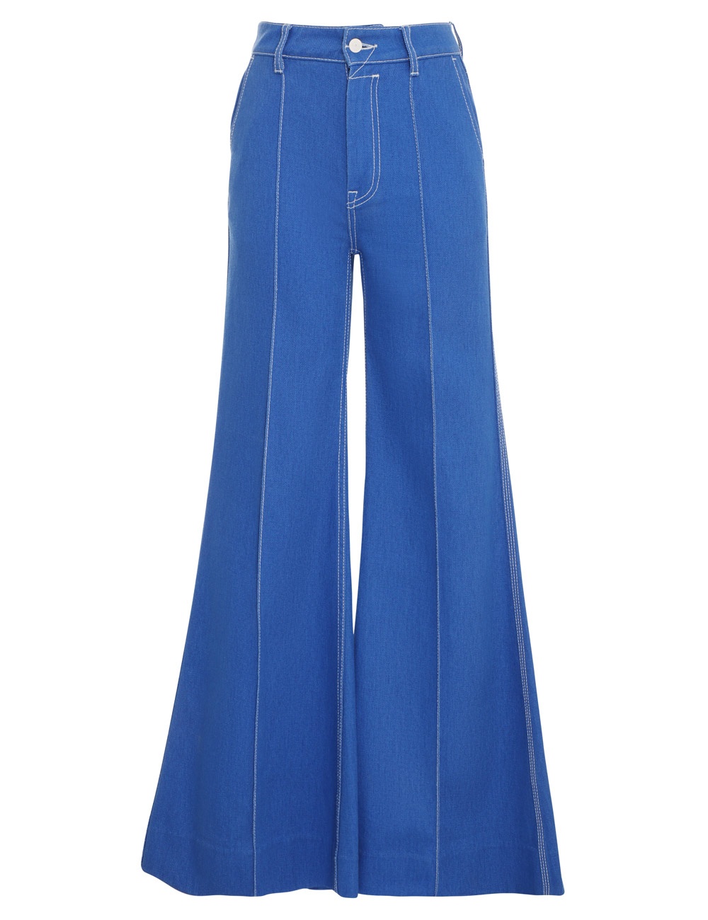 ITEM DETAILS The High Tide Flare Jean in Regatta from our Resort 2023 Collection, High Tide. Denim jeans featuring a high waisted, flared silhouette, contrast topstiching and front and back pockets. - High waisted denim jeans - Flared silhouette - Contrast topstitching - Pin tuck legs Style Code: 5449PHIG STYLING The High Tide Flare Jean appeared in look 17 of the Resort 2023 Runway. Style the jean with the High Tide Nautical Crop Jacket and Backless Boat Shoe to complete the runway look. SIZE DETAILS 24 25 26 27 28 29 30 31 32 Length 118 118 118 118 119 119 119 120 120 Waist 62 64 68 70 72 76 78 80 82 Hip 88 90 94 96 98 100 102 104 106 This garment fits true to size, we recommend you select your normal size. Our model is 5'9.5"" / 178 cm, bust size 32C/10C and is wearing a size 26. CARE INSTRUCTIONS Main: 100% cotton Pocketing: 80% polyester 20% cotton Exclusive of trims Gentle cold hand wash separately with mild detergent Do not bleach Do not soak, wring or rub Do not tumble dry Dry flat inside out, away from direct sunlight Cool iron on reverse