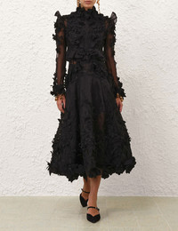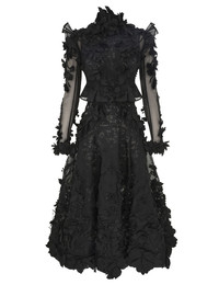 ITEM DETAILS The Hypnotic Applique Dress in Black from our Fall 2025 Collection, Hypnotic. A full-length silk organza dress featuring laser-cut flower detailing across the bodice and skirt, cutouts at the hips, and a high stand collar. - 100% silk fabric - Invisible centre back zip closure - High stand collar with flower trims - Cutouts at bodice sides - Long sheer sleeves with applique detailing - Comes with separate lace slip Runway: This style was featured on the F25 Runway. Style Code: 6111DF251 SIZE DETAILS 0P 0 1 2 3 4 Length 46 50 50.5 50.5 51 51 Bust 34.5 37 39.5 41 43.5 45 Hip 37 38.5 41 42.5 45 47 Sleeve 23 25 25 25.5 25.5 26 Designed to be fitted at the bust, waist, and sleeves This garment fits true to size Available in size 0P, suited to clients who are under 5'3"/ 160cm Model is 5'9.5"/178 cm, bust size 32C/10C and wears a size 0 Item measurements are in inches CARE INSTRUCTIONS Main: 100% silk; contrast: 100% polyester; lining: 100% polyester; slip: 90% polyamide, 10% elastane Spot clean only if required with a damp clean cloth Gentle cold hand wash separately with mild detergent Remove any detachable trims prior to washing Do not soak, rub or wring Do not bleach Do not tumble dry Dry flat in shade; Cool iron with protective cloth; Do not spot clean; Do not dry clean Always check the label or care card for specific care instructions.