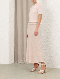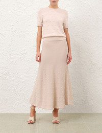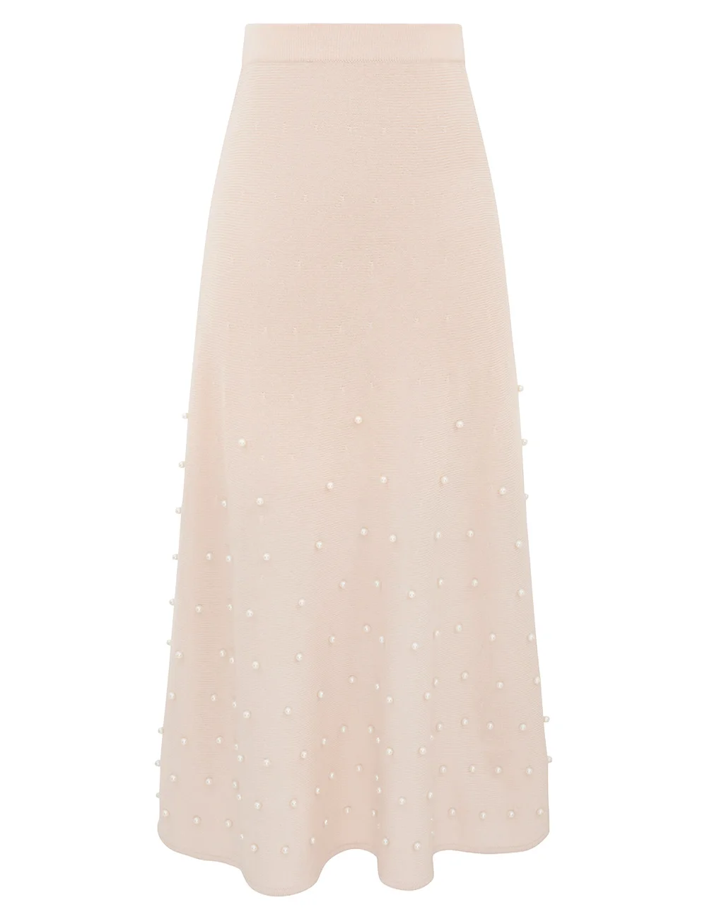 ITEM DETAILS The Hypnotic Beaded Midi Skirt in Chalk from our Fall 2025 Collection, Hypnotic. A wool midi skirt featuring an elasticated waistband and bead detailing throughout. - 100% merino wool - Slip on style midi skirt - Pearl studs embellished across the front and back - Soft A-line silhouette Style Code: 5517SF251 SIZE DETAILS 0P 0 1 2 3 4 Length 74 81 81 81 81 81 Waist 62 64 70 76 82 86 Hip 76 80 86 92 98 102 Designed with an elasticated waistband for an easy fit This garment fits true to size Available in size 0P, suited to clients who are under 5'3"/ 160cm Model is 5'9.5"/178 cm, bust size 32C/10C and wears a size 0 Item measurements have been rounded to the nearest cm CARE INSTRUCTIONS 100% wool Dry clean only code f (hydrocarbon only); Remove any detachable trims prior to dry cleaning; Cover to protect trim; Cool iron with protective cloth; Do not spot clean; Store garment flat do not hang Always check the label or care card for specific care instructions.