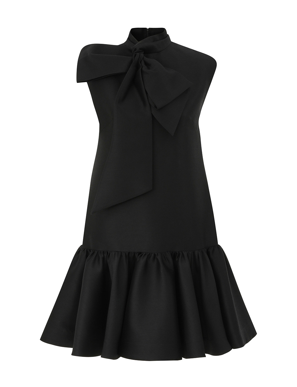 ITEM DETAILS The Hypnotic Bow Mini Dress in Black from our Fall 2025 Collection, Hypnotic. A structured sleeveless mini dress featuring an exaggerated bow necktie and frilled hem. - Wool blend mini dress - Fixed bow necktie - Rounded neckline - Invisible zip closure at centre back - Gathered frill detail at hip seam - Frill detail at hem - Lined Style Code: 5093DF251 SIZE DETAILS 0P 0 1 2 3 4 Length 80 86 86 88 89 91 Bust 90 94 100 104 110 114 Hip 102 106 112 118 124 128 Designed to be slightly fitted at the bust and waist, loose at the hip This garment fits true to size Available in size 0P, suited to clients who are under 5'3"/ 160cm Model is 5'9.5"/178 cm, bust size 32C/10C and wears a size 0 Item measurements have been rounded to the nearest cm CARE INSTRUCTIONS Main: 92% wool, 8% silk; lining: 100% viscose Dry clean only code f (hydrocarbon only); Cover to protect trim; Cool iron with protective cloth; Do not spot clean ; Always check the label or care card for specific care instructions.