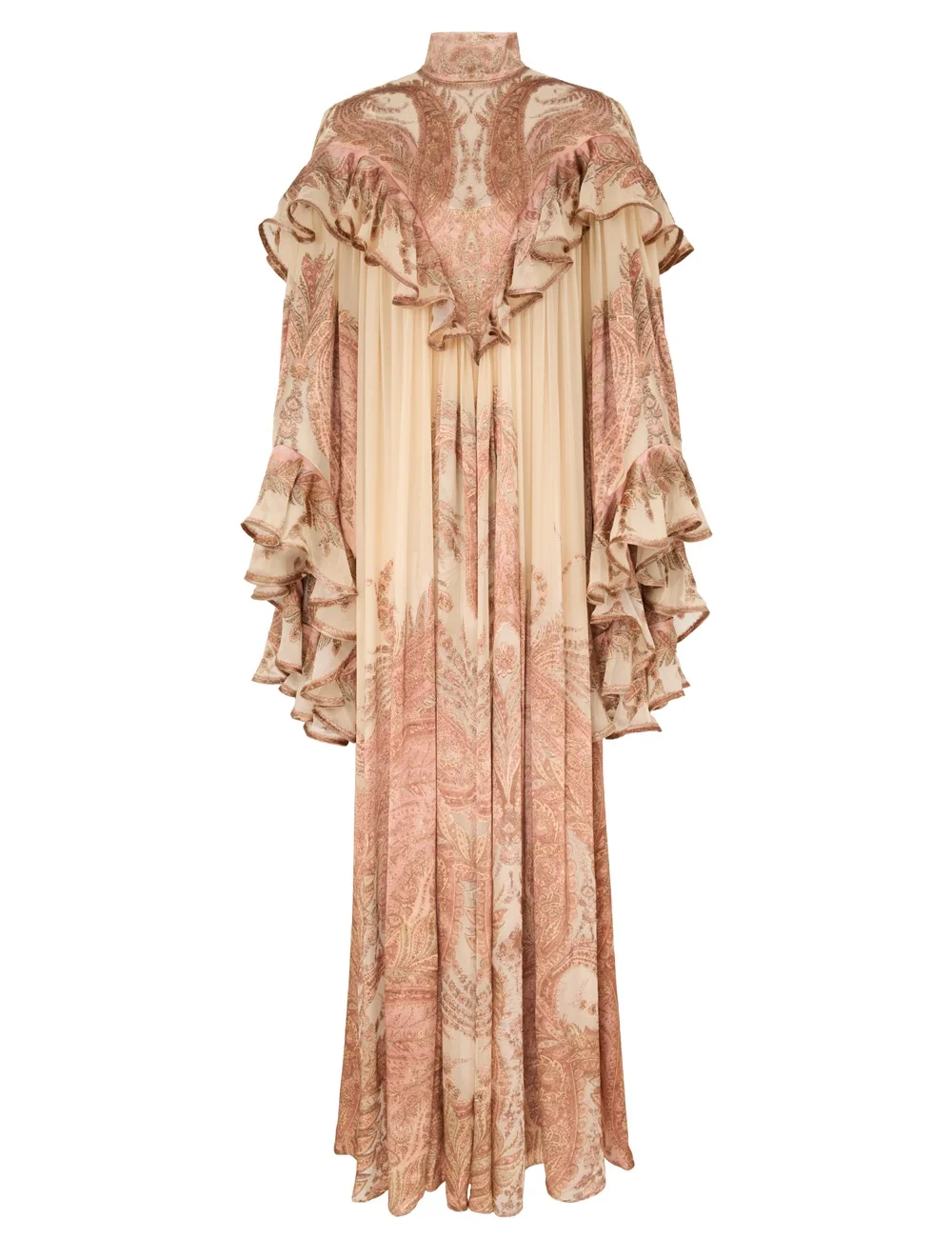 ITEM DETAILS The Hypnotic Burnout Dress in Cream Paisley from our Fall 2025 Collection, Hypnotic. A maxi dress featuring a burnout paisley print, a stand collar and frill detailing across the bodice and sleeves. - Stand collar with fine piping - Long angel sleeves - Heavily gathered for volume and movement - Invisible zip closure at centre back neck - Frill trim at yoke and sleeves - Comes with separate slip Style Code: 5026DF251 SIZE DETAILS 0P 0 1 2 3 4 Length 145 158 158 159 159 159 Sleeve 48 52 52 53 53 55 Designed for a relaxed fit This garment fits true to size Available in size 0P, suited to clients who are under 5'3"/ 160cm Model is 5'9.5"/178 cm, bust size 32C/10C and wears a size 0 Item measurements have been rounded to the nearest cm CARE INSTRUCTIONS Main: 76% viscose, 24% silk; slip: 86% recycled polyester, 14% elastane Dry clean only code f (hydrocarbon only); Cover to protect trim; Cool iron with protective cloth; Do not spot clean ; Gentle cold hand wash separately with mild detergent Remove any detachable trims prior to cleaning Cover to protect trim; Do not soak, rub or wring Do not bleach Do not tumble dry Dry flat in shade Cool iron with protective cloth Do not spot clean Dry cleanable code p Always check the label or care card for specific care instructions.