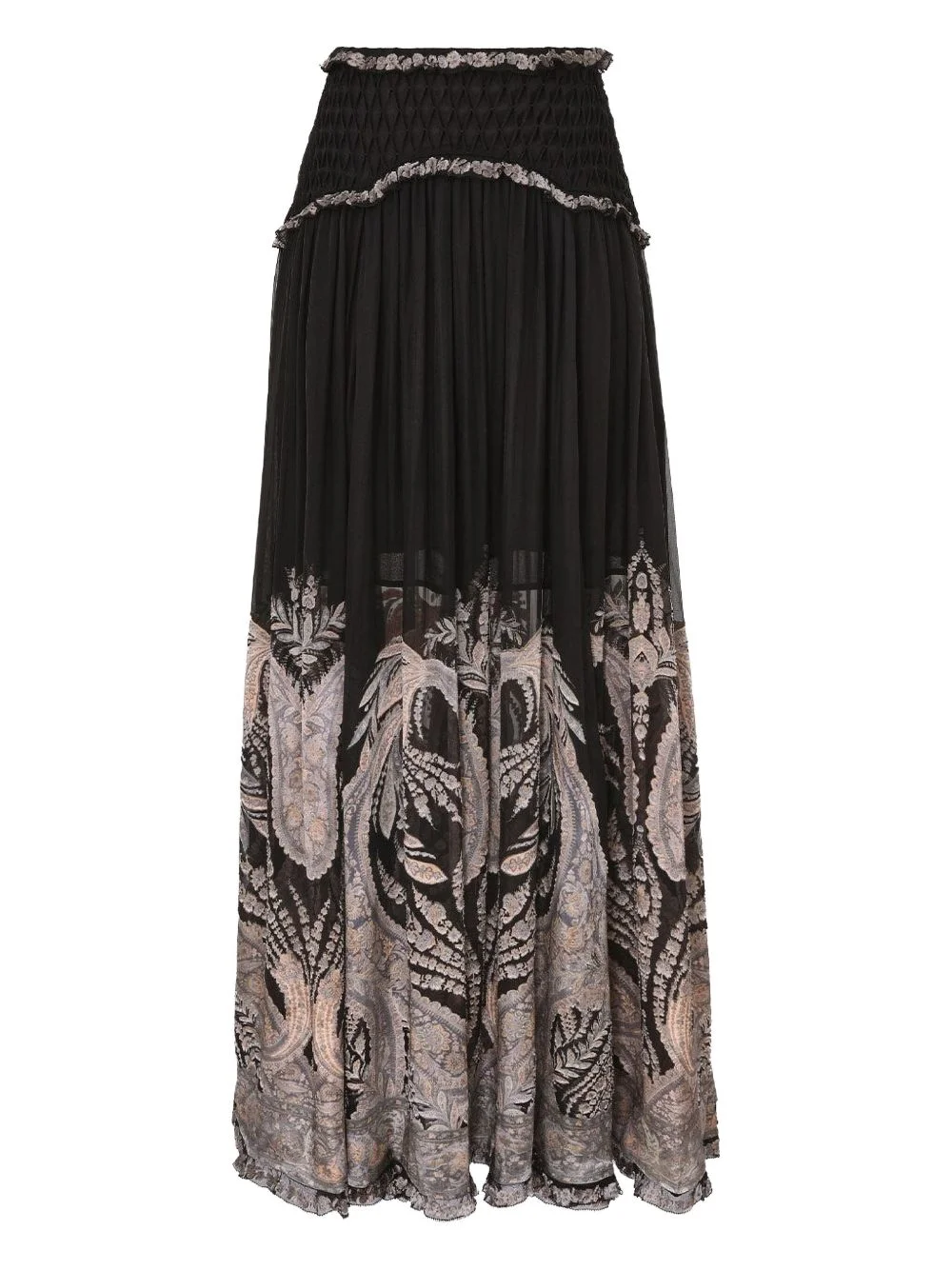 ruffled-detail maxi skirt Highlights - Black - Paisley print - Ruffled detail - Smocked waistband - Maxi length Imported Composition Silk 100% Washing instructions Read Manufacturer Guidelines