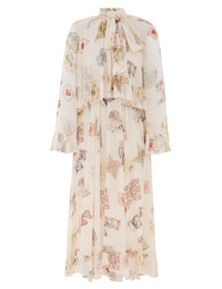 ITEM DETAILS The Hypnotic Flutter Dress in Cream Love Letter from our Fall 2025 Collection, Hypnotic. A long sleeve midi dress featuring a stand collar with a pussybow necktie, a centre back zip closure and cascading frills throughout. - Bow necktie at collar - Flutter bodice overlay - Tiered ruffles throughout - Invisible zip at centre back - Long sleeves with flared cuffs Style Code: 5644DF251 SIZE DETAILS 0P 0 1 2 3 4 Length 51 53 54 54 56 56 Bust 88 92 98 104 110 114 Waist 68 70 76 82 88 92 Sleeve 67 72 74 75 76 77 Designed for a slightly loose fit, with a closer fit at the bust This garment fits true to size Available in size 0P, suited to clients who are under 5'3"/ 160cm Model is 5'9.5"/178 cm, bust size 32C/10C and wears a size 0 Item measurements have been rounded to the nearest cm CARE INSTRUCTIONS Main: 100% viscose; lining: 100% viscose Dry clean only code f (hydrocarbon only); Remove any detachable trims prior to dry cleaning; Cover to protect trim; Do not steam; Cool iron with protective cloth; Do not spot clean Always check the label or care card for specific care instructions.