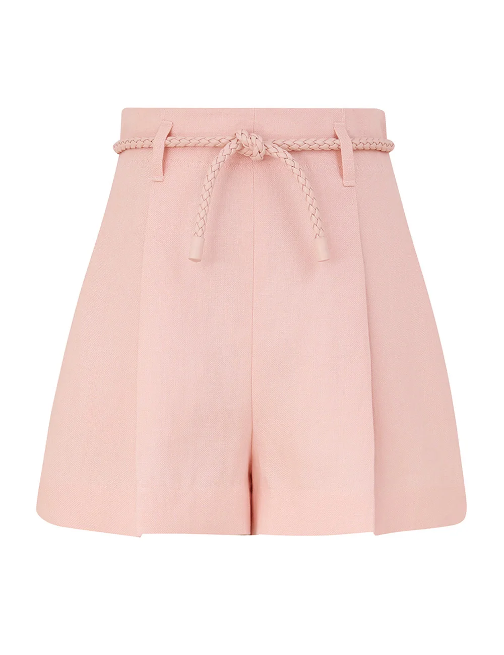 ITEM DETAILS The Hypnotic Linen Short in Pink from our Fall 2025 Collection, Hypnotic. A linen high waisted short featuring side seam pockets and a removable rope belt. - Linen high waisted short - Side seam pockets - Adjustable and removable belt - Tucks throughout - Welt pockets on back - Invisible zip at centre back Style Code: 2103AF251 SIZE DETAILS 0P 0 1 2 3 4 Length 38 40 41 42 42 43 Inseam 7 7 7 7 7 7 Waist 66 70 74 80 84 90 Fitted through the waist, relaxed through the legs This garment fits true to size Available in size 0P, suited to clients who are under 5'3"/ 160cm Model is 5'9.5"/178 cm, bust size 32C/10C and wears a size 0 Item measurements have been rounded to the nearest cm CARE INSTRUCTIONS Main: 100% linen; lining: 75% viscose, 25% silk Dry clean only code f (hydrocarbon only); Remove any detachable trims prior to dry cleaning; Cover to protect trim; Cool iron with protective cloth; Light steam only; Do not spot clean Always check the label or care card for specific care instructions.