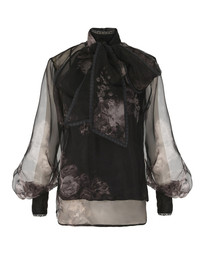 ITEM DETAILS The Hypnotic Pussybow Blouse in Ghost Floral from our Fall 2025 Collection, Hypnotic. A silk organza blouse featuring a stand collar with an exaggerated pussybow necktie, blouson sleeves and elongated cuffs with zip closures. - 100% silk fabric - Sheer blouse with lace trims at the collar, necktie and cuffs - Exaggerated self-tie pussybow at neckline - Blouson sleeves with elongated zippered cuffs - Invisible zip at centre back - Comes with a separate cami Style Code: 5353TF251 SIZE DETAILS 0P 0 1 2 3 4 Length 72 76 76 77 78 78 Sleeve 62 66 66 66 66 66 Designed for a relaxed fit This garment fits true to size Available in size 0P, suited to clients who are under 5'3"/ 160cm Model is 5'9.5"/178 cm, bust size 32C/10C and wears a size 0 Item measurements have been rounded to the nearest cm CARE INSTRUCTIONS Main: 100% silk; contrast: 100% polyamide; slip: 100% viscose; contrast: 100% polyamide Dry clean only code f (hydrocarbon only); Remove any detachable trims prior to dry cleaning; Cover to protect trim; Cool iron with protective cloth; Light steam only; Do not spot clean Dry clean only code f (hydrocarbon only); Cover to protect trim; Cool iron with protective cloth; Do not spot clean ; Always check the label or care card for specific care instructions.