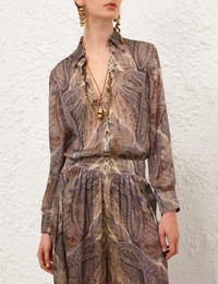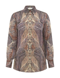 ITEM DETAILS The Hypnotic Satin Shirt in Denim Paisley from our Fall 2025 Collection, Hypnotic. A silk shirt featuring long sleeves, embroidery detailing and a classic collar. - 100% silk fabric - Relaxed silhouette style shirt - Buttons down the centre front and on the cuffs - Embroidery detail on the breast - Gathers on sleeves into cuffs - Pleat detail at back yoke Runway: This style was featured on the F25 Runway. Style Code: 5747TF251 SIZE DETAILS 0P 0 1 2 3 4 Length 25.5 27.5 27.5 28 28.5 28.5 Bust 41 42.5 45 46.5 49 50.5 Sleeve 20 21.5 21.5 22 22 22.5 Designed for a relaxed fit This garment fits true to size Available in size 0P, suited to clients who are under 5'3"/ 160cm Model is 5'9.5"/178 cm, bust size 32C/10C and wears a size 0 Item measurements are in inches CARE INSTRUCTIONS Main: 100% silk Dry clean only code f (hydrocarbon only); Remove any detachable trims prior to dry cleaning; Cover to protect trim; Cool iron with protective cloth; Light steam only; Do not spot clean Always check the label or care card for specific care instructions.