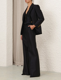 ITEM DETAILS The Hypnotic Tailored Jacket in Black from our Fall 2025 Collection, Hypnotic. A longline wool blend jacket featuring a single breasted closure, peak lapels and lightly padded shoulders. - Wool blend jacket - Left chest welt pocket - Branded buttons at front closure and sleeve cuffs - Slanted welt pockets with flaps - Single back vent - Fully lined Style Code: 0596JF251 SIZE DETAILS 0P 0 1 2 3 4 Length 67 72 73 74 74 75 Bust 86 92 98 102 108 112 Sleeve 56 60 61 62 63 63 Designed to have an oversized, tailored fit This garment fits true to size Available in size 0P, suited to clients who are under 5'3"/ 160cm Model is 5'9.5"/178 cm, bust size 32C/10C and wears a size 0 Item measurements have been rounded to the nearest cm CARE INSTRUCTIONS Main: 92% wool, 8% silk; lining: 75% viscose, 25% silk Dry clean only code f (hydrocarbon only); Cover to protect trim; Cool iron with protective cloth; Do not spot clean ; Always check the label or care card for specific care instructions.