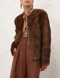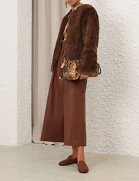 ITEM DETAILS The Hypnotic Tip Shearling Jacket in Toffee from our Fall 2025 Collection, Hypnotic. A collarless shearling jacket with a straight silhouette. - Sheep shearling jacket - Front pockets - Hook and eye fastenings for centre front closure - round neckline - Sheep leather lining Style Code: 6091JF251 SIZE DETAILS S M L Length 61 62 64 Bust 104 114 124 Sleeve 61 62 64 Designed for a relaxed, oversized fit This garment fits true to size Available in size 0P, suited to clients who are under 5'3"/ 160cm Model is 5'9.5"/178 cm, bust size 32C/10C and wears a size 0 Item measurements have been rounded to the nearest cm CARE INSTRUCTIONS Main: sheep shearling; lining: sheep leather Clean professionally by a specialist leather and suede expert; Do not dry clean; Avoid water; Due to the nature of this garment colour may transfer onto clothing, accessories or furnishings Always check the label or care card for specific care instructions.