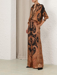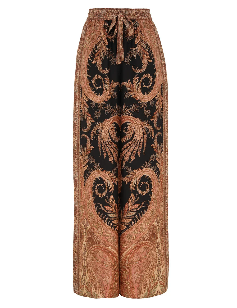 ITEM DETAILS The Hypnotic Track Pant in Black Paisley from our Fall 2025 Collection, Hypnotic. A silk wide leg pant featuring an elasticated waistband with a self-tie drawstring and side seam pockets. - 100% silk fabric - Relaxed wide-leg silhouette - Elasticated waistband with self-tie drawstring - Side seam pockets Style Code: 1111PF251 SIZE DETAILS 0P 0 1 2 3 4 Length 101 112 112 113 114 114 Waist 64 66 72 78 84 88 Hip 106 112 116 122 126 Inseam 82 82 82 82 82 82 Designed with an elastic waist for a flexible fit This garment fits true to size Available in size 0P, suited to clients who are under 5'3"/ 160cm Model is 5'9.5"/178 cm, bust size 32C/10C and wears a size 0 Item measurements have been rounded to the nearest cm CARE INSTRUCTIONS Main: 100% silk Dry clean only code f (hydrocarbon only); Remove any detachable trims prior to dry cleaning; Cover to protect trim; Do not steam; Cool iron with protective cloth; Do not spot clean Always check the label or care card for specific care instructions.