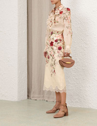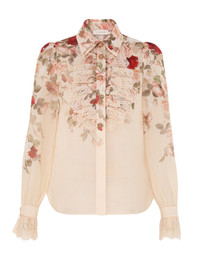 ITEM DETAILS The Hypnotic Tux Shirt in Cream Cascade from our Fall 2025 Collection, Hypnotic. A ramie long sleeve shirt featuring a classic collar, buttons down the centre front and ruffle detailing throughout with lace trim. - 100% ramie fabric - Snap buttons at the collar and cuffs - Long sleeves with frill cuffs - Lace ruffle detailing throughout - Asymmetrical hem with partial side splits Style Code: 5355TF251 SIZE DETAILS 0P 0 1 2 3 4 Length 60 63 64 65 65 66 Bust 88 94 100 104 110 114 Sleeve 63 67 68 69 69 70 Designed for a slightly loose fit, with a closer fit at the bust, shoulders and sleeves This garment fits true to size Available in size 0P, suited to clients who are under 5'3"/ 160cm Model is 5'9.5"/178 cm, bust size 32C/10C and wears a size 0 Item measurements have been rounded to the nearest cm CARE INSTRUCTIONS Main: 100% ramie; contrast: 100% polyester Dry clean only code f (hydrocarbon only); Remove any detachable trims prior to dry cleaning; Cover to protect trim; Cool iron with protective cloth; Light steam only; Do not spot clean Always check the label or care card for specific care instructions.