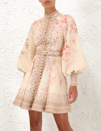 ITEM DETAILS The Illuminate Buttoned Mini Dress in Coral Floral from our Spring 2025 Collection, Illumination. A linen mini dress featuring a placement print, long blouson sleeves with zippers at the cuffs, and raffia buttons down the center front. - Linen mini dress - Self covered removable belt with buckle - Rouleau loops with raffia buttons - Center back zip and zippers at the cuffs - Exaggerated sleeves - Stand collar - Placement print throughout Style Code: 3970DS251 SIZE DETAILS 0P 0 1 2 3 4 Length 80 86 87 88 90 92 Bust 82 86 92 96 102 106 Sleeve 65 69 70 71 71 72 Waist 64 66 72 78 82 88 Fitted at the waist Relaxed through hips and legs This garment fits true to size Available in size 0P, suited to clients who are under 5'3"/ 160cm Model is 5'9.5"/178 cm, bust size 32C/10C and wears a size 0 Item measurements have been rounded to the nearest cm CARE INSTRUCTIONS Main: 100% linen Dry clean only code f (hydrocarbon only); Remove any detachable trims prior to dry cleaning; Cover to protect trim; Cool iron with protective cloth; Light steam only; Do not spot clean Always check the label or care card for specific care instructions.