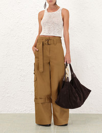 ITEM DETAILS The Illuminate Cargo Pant in Khaki from our Spring 2025 Collection, Illumination. A cotton drill cargo pant featuring a mid rise waistline and a self covered D-ring belt. - Mid rise cargo pant - Pockets throughout - Removable D-ring belt - Hook and bar closure with zip Runway: This style was featured on the S25 Runway. Style Code: 3061PS251 SIZE DETAILS 0P 0 1 2 3 4 Length 104 115 116 116 117 118 Waist 72 76 81 86 91 96 Hip 93 98 102 108 113 118 Fitted through the waist, relaxed through hips and legs This garment fits true to size Available in size 0P, suited to clients who are under 5'3"/ 160cm Model is 5'9.5"/178 cm, bust size 32C/10C and wears a size 0 Item measurements have been rounded to the nearest cm CARE INSTRUCTIONS Main: 100% cotton Dry clean only code f (hydrocarbon only); Cover to protect trim; Cool iron with protective cloth; Do not spot clean ; Always check the label or care card for specific care instructions.