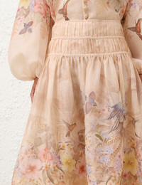 ITEM DETAILS The Illuminate Drawn Midi Skirt in Ivory Tropical from our Spring 2025 Collection, Illumination. A silk linen midi skirt featuring a ruched waistband, piping details, a side zip closure, and a full skirt. - Silk linen midi skirt - High waisted - Ruched waistband - Piping details - Invisible zip on the left side - Lined Style Code: 3976SS251 SIZE DETAILS 0P 0 1 2 3 4 Length 78 85 85 85 85 85 Waist 70 73 78 84 89 94 Hip 89 94 100 104 110 115 Fitted through the waist and hips Relaxed through the legs This garment fits true to size Available in size 0P, suited to clients who are under 5'3"/ 160cm Model is 5'9.5"/178 cm, bust size 32C/10C and wears a size 0 Item measurements have been rounded to the nearest cm CARE INSTRUCTIONS Main: 52% linen, 48% silk, lining: 100% cotton Dry clean only code f (hydrocarbon only); Remove any detachable trims prior to dry cleaning; Cover to protect trim; Cool iron with protective cloth; Light steam only; Do not spot clean Always check the label or care card for specific care instructions.