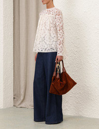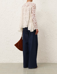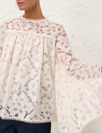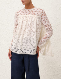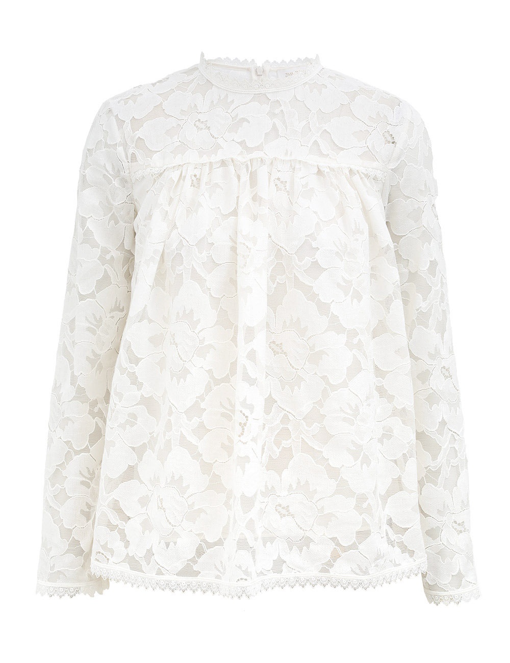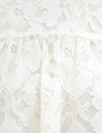 ITEM DETAILS The Illuminate Lace Gathered Top in Cream from our Spring 2025 Collection, Illumination. A long sleeve lace top featuring lace trims on the neckline, sleeves, and hem, finished with a centre back zip closure. - Lace top - Gathered bodice - Centre back invisible zip - Lace trims on sleeves and hem - Rounded neckline with lace trims Style Code: 3986TS251 SIZE DETAILS 0P 0 1 2 3 Length 59 62 63 63 66 Bust 145 150 155 160 165 Sleeve 54 58 59 60 60 Designed to be fitted across the shoulders and sleeves. Due to the nature of the non-stretchy fabric, this area may feel restrictive This garment fits true to size Available in size 0P, suited to clients who are under 5'3"/ 160cm Model is 5'9.5"/178 cm, bust size 32C/10C and wears a size 0 Item measurements have been rounded to the nearest cm CARE INSTRUCTIONS Main: 70% cotton, 30% polyamide; lining: 100% viscose Dry clean only code f (hydrocarbon only); Remove any detachable trims prior to dry cleaning; Cover to protect trim; Do not steam; Cool iron with protective cloth; Do not spot clean Always check the label or care card for specific care instructions.
