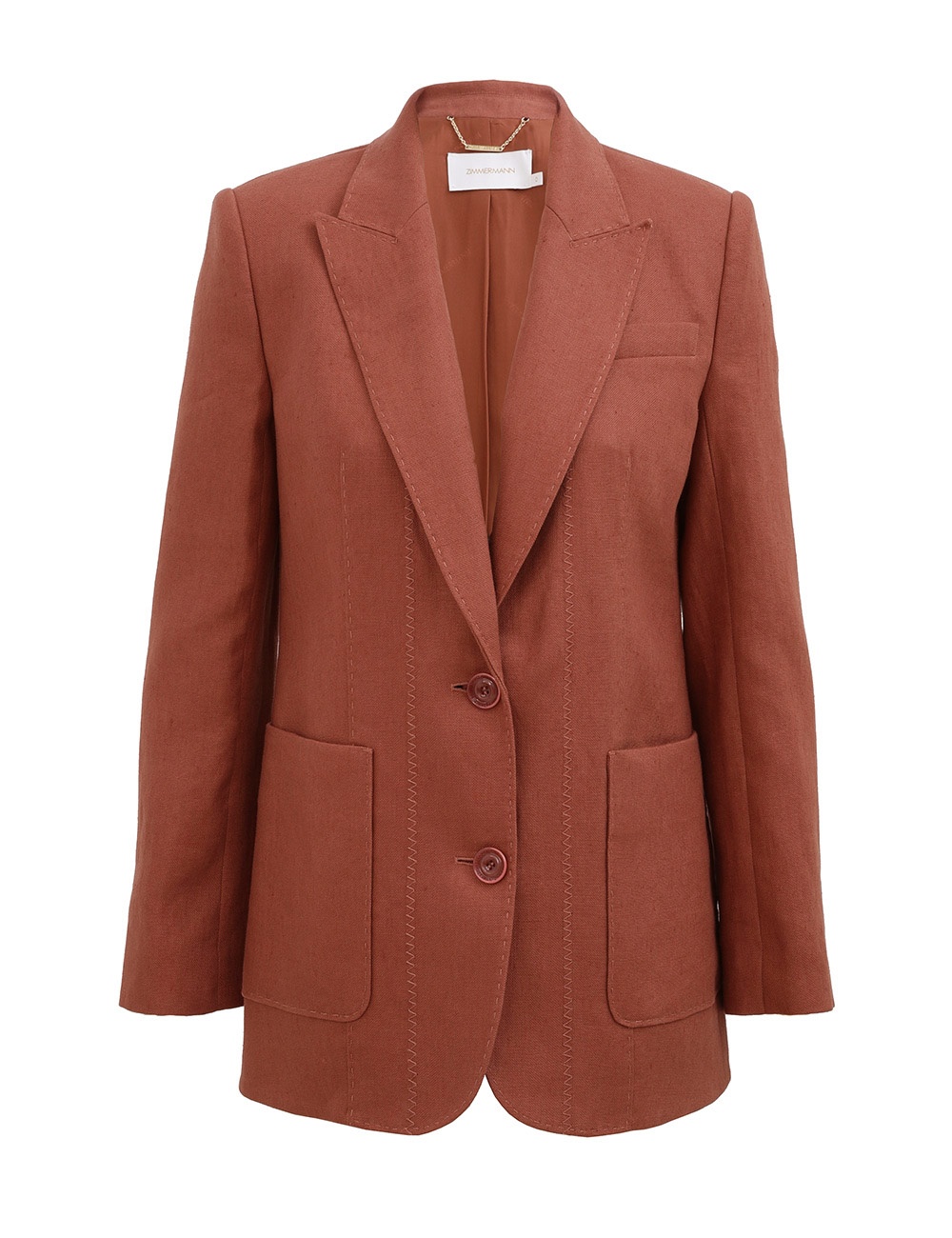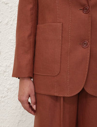 ITEM DETAILS The Illuminate Linen Jacket in Rust from our Spring 2025 Collection, Illumination. A linen jacket featuring a classic collar, front patch pockets and a double button closure at centre front. - Tailored single breasted jacket - Front patch pockets - Topstitch detail - Front left breast pocket - Centre front button closure - Single vent at centre back Style Code: 2989JS251 SIZE DETAILS 0P 0 1 2 3 Length 71 76 77 78 78 Bust 94 99 104 109 114 Sleeve 58 62 63 64 64 Relaxed fit This garment fits true to size Available in size 0P, suited to clients who are under 5'3"/ 160cm Model is 5'9.5"/178 cm, bust size 32C/10C and wears a size 0 Item measurements have been rounded to the nearest cm CARE INSTRUCTIONS Main: 100% linen; lining: 75% viscose, 25% silk Dry clean only code f (hydrocarbon only); Cover to protect trim; Cool iron with protective cloth; Do not spot clean ; Always check the label or care card for specific care instructions.