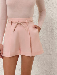 ITEM DETAILS The Illuminate Linen Short in Pink from our Spring 2025 Collection, Illumination. A linen high waisted short featuring side seam pockets and a removable rope belt. - Linen high waisted short - Side seam pockets - Adjustable and removable belt - Tucks throughout - Welt pockets on back - Invisible zip at centre back Style Code: 2103AS251 SIZE DETAILS 0P 0 1 2 3 Length 39 40 41 42 42 Waist 66 70 74 80 84 Fitted through the waist, relaxed through the legs This garment fits true to size Available in size 0P, suited to clients who are under 5'3"/ 160cm Model is 5'9.5"/178 cm, bust size 32C/10C and wears a size 0 Item measurements have been rounded to the nearest cm CARE INSTRUCTIONS Main: 100% linen, lining: 75% viscose, 25% silk Dry clean only code f (hydrocarbon only); Remove any detachable trims prior to dry cleaning; Cover to protect trim; Cool iron with protective cloth; Light steam only; Do not spot clean Always check the label or care card for specific care instructions.