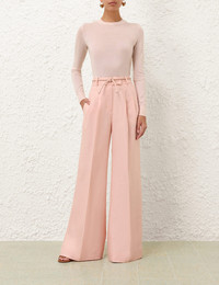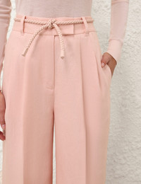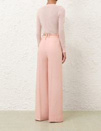 ITEM DETAILS The Illuminate Linen Wide Leg Pant in Pink from our Spring 2025 Collection, Illumination. A high waisted linen pant featuring centre front pintucks, front pockets and a removable buckle belt. - Linen pant - Wide leg - Pintucks through centre front legs - Front fly closure - Side seam and back welt pockets - Removable self covered belt - Topstitch zig-zag detailing Style Code: 2408PS251 SIZE DETAILS 0P 0 1 2 3 Length 103 111 112 113 113 Waist 65 68 73 78 83 Fitted waistband, relaxed through the legs This garment fits true to size Available in size 0P, suited to clients who are under 5'3"/ 160cm Model is 5'9.5"/178 cm, bust size 32C/10C and wears a size 0 Item measurements have been rounded to the nearest cm CARE INSTRUCTIONS Main: 100% linen, contrast: 55% polyester, 45% cotton, lining: 75% viscose, 25% silk Dry clean only code f (hydrocarbon only); Remove any detachable trims prior to dry cleaning; Cover to protect trim; Cool iron with protective cloth; Light steam only; Do not spot clean Always check the label or care card for specific care instructions.