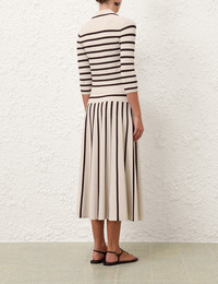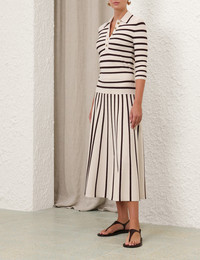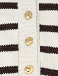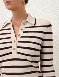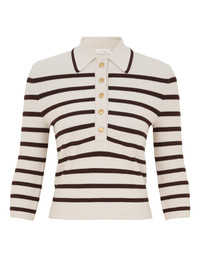 ITEM DETAILS The Illuminate Stripe Polo in Cream/Chocolate from our Spring 2025 Collection, Illumination. A polo knit top featuring a classic collar and buttons down the top front opening. - Polo knit top - Classic collar - Contrast stripes - Buttons down the top front opening Style Code: 3677TS251 SIZE DETAILS 0P 0 1 2 3 4 Length 44 47 48 49 49 50 Bust 74 79 84 89 94 99 Sleeve 36 39 40 41 41 42 Slim fit This garment fits true to size Available in size 0P, suited to clients who are under 5'3"/ 160cm Model is 5'9.5"/178 cm, bust size 32C/10C and wears a size 0 Item measurements have been rounded to the nearest cm CARE INSTRUCTIONS 87% viscose 12% polyamide 1% elastane Dry clean only code f (hydrocarbon only); Remove any detachable trims prior to dry cleaning; Cover to protect trim; Cool iron with protective cloth; Do not spot clean; Store garment flat do not hang Always check the label or care card for specific care instructions.