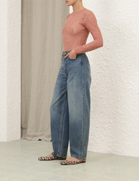 ITEM DETAILS The Illustration Barrel Jean in Neptune from our Fall 2024 Collection, In Illustration. A denim barrel jean featuring a wide, straight leg silhouette, finished with custom topstitching throughout. - Straight leg denim jean - Pockets throughout - Belt loops - Mid rise - ZIMMERMANN branded gold button Style Code: 0426PF241 SIZE DETAILS 24 25 26 27 28 29 30 31 32 Length 44 44 44 44 44 44 45 45 45 Waist 26 27 28 29 30 31 32 33 34 Hip 37 39 39 40 41 43 43 44 45 Straight fit throughout Full length, mid rise This garment fits true to size Model is 5'9.5"/178 cm, bust size 32C/10C and wears a size 0 Item measurements are in inches. CARE INSTRUCTIONS 100% cotton Gentle cold machine wash separately with mild detergent Remove detachable trims and accessories prior washing Do not soak or bleach Dry without delay away from direct sunlight or heat Do not tumble dry Cool iron on reverse side with protective cloth Do not spot clean Dry cleanable code p Always check the garment care label for specific care instructions.
