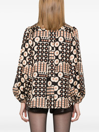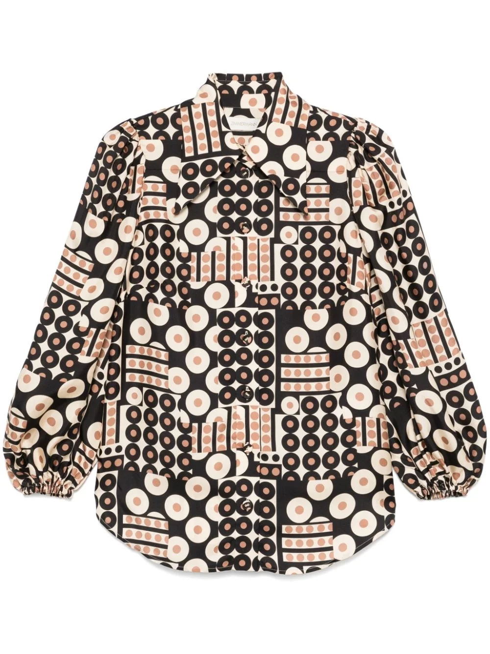 Illustration blouse Highlights - Black/multicolour - Silk - Satin weave - Front button fastening - Geometric-pattern print - Oversized pointed collar - Dart detailing - Long puff sleeves - Elasticated cuffs - Box-pleat detail - Curved hem Imported Composition Silk 100% SIZE & FIT Model measurements Height 5 ft 9 in(1.75 m) Bust/Chest 31.88 in(81 cm) Hips 34.64 in(88 cm) Waist 24.01 in(61 cm) FittingInformation Designed to be unstructured, offering a loose fit throughout Made from a lightweight non-stretch fabric