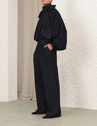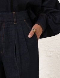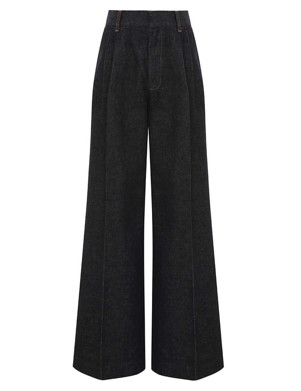 ITEM DETAILS The Illustration Denim Pant in Night Sky from our Fall 2024 Collection, In Illustration. A denim jean featuring a wide, straight leg silhouette. - Denim jean - Topstitching throughout - Belt loops - Deep tucks at front leg - Centre front zip with hook and bar closure Runway: This style was featured on the Fall 2024 Runway. Style Code: 1561PF241 SIZE DETAILS 0P 0 1 2 3 4 Length 39 42.1 42.5 42.5 42.9 43.3 Waist 28.3 29.5 31.5 33.5 35.4 37.4 Hip 39 40.9 42.9 44.9 46.9 48.8 Fitted through the waist Mid rise waist This garment fits true to size Available in size 0P, suited to clients who are under 5'3"/ 160cm Model is 5'9.5"/178 cm, bust size 32C/10C and wears a size 0 Item measurements are in inches. CARE INSTRUCTIONS Main: 73% cotton, 27% viscose pocketing: 86% polyester, 14% cotton Gentle cold machine wash separately with mild detergent Remove detachable trims and accessories prior to washing Do not soak or bleach Dry without delay away from direct sunlight or heat Do not tumble dry Cool iron on reverse side with protective cloth Do not spot clean Dry cleanable code p Always check the garment care label for specific care instructions.
