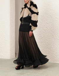 ITEM DETAILS The Illustration Flounce Skirt in Black from our Fall 2024 Collection, In Illustration. A silk maxi skirt featuring a pleated waist and sheer skirt with crinoline hem. - Silk skirt - Maxi length - Pleated waist - French seams - Centre back zip - Crinoline hem Runway: This style was featured on the Fall 2024 Runway. Style Code: 1394SF241 SIZE DETAILS 0P 0 1 2 3 Length 40.9 44.5 44.5 44.5 44.5 Waist 25.6 26.8 28.7 30.7 32.7 Hip 36.6 38.6 40.6 42.5 44.5 Fitted through the waist and hips This garment fits true to size Available in size 0P, suited to clients who are under 5'3"/ 160cm Model is 5'10.5"/179 cm, bust size 34C/12C and wears a size 0 Item measurements are in inches. CARE INSTRUCTIONS Main: 100% silk hip lining: 100% silk skirt lining: 100% viscose Dry clean code f (hydrocarbon only), inside out in a protective bag Remove detachable trims and accessories prior to cleaning Cover to protect hardware Cool iron with protective cloth Do not spot clean Always check the garment care label for specific care instructions.