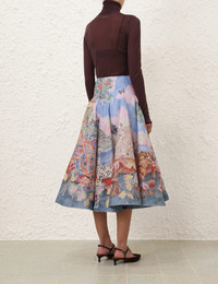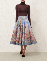 ITEM DETAILS The Illustration Godet Skirt in Eden Garden from our Fall 2024 Collection, In Illustration. A placement print midi skirt featuring an A-line silhouette with French seam panels throughout, and an invisible side zip. - Godet skirt - Midi length - Crinoline hem - Invisible size zip on the left side - Placement print throughout - Fully lined with cotton voile Runway: This style was featured on the Fall 2024 Runway. Style Code: 1358SF241 SIZE DETAILS 0P 0 1 2 3 4 Length 31.1 33.9 33.9 33.9 33.9 33.9 Waist 25.2 26.8 28.3 30.7 32.7 34.6 Hip 34.6 36.2 37.8 40.2 42.1 44.1 Fitted across waist and hips This garment fits true to size Available in size 0P, suited to clients who are under 5'3"/ 160cm Model is 5'9.5"/178 cm, bust size 32C/10C and wears a size 0 Item measurements are in inches. CARE INSTRUCTIONS Main: 53% linen, 47% silk contrast: 100% polyester lining: 100% cotton Dry clean code f (hydrocarbon only), inside out in a protective bag Remove detachable trims and accessories prior to cleaning Cover to protect hardware Cool iron with protective cloth Do not spot clean Always check the garment care label for specific care instructions.