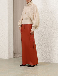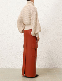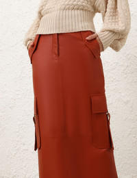 ITEM DETAILS The Illustration Leather Skirt in Spice from our Fall 2024 Collection, In Illustration. A leather maxi skirt featuring pockets throughout and a centre back split. - Maxi leather skirt - Back welt pocket - Side flap pockets with snap closure - Concealed front zip closure with hook and bar - Side pockets with a 'D' buckle and a strap closure - Centre back split Runway: This style was featured on the Fall 2024 Runway. Style Code: 0726SF241 SIZE DETAILS 0P 0 1 2 3 Length 38.6 42.1 42.1 42.1 42.1 Waist 27.2 28.3 30.3 32.3 34.3 Hip 35 37 39 40.9 42.9 Fitted at the waist with slim fit through legs Maxi length with a low rise This garment fits true to size Available in size 0P, suited to clients who are under 5'3"/ 160cm Model is 5'9.5"/178 cm, bust size 32C/10C and wears a size 0 Item measurements are in inches. CARE INSTRUCTIONS Main: 100% leather lining: 75% viscose, 25% silk Clean professionally by a specialist leather and suede expert Do not wash Do not bleach Do not tumble dry Do not iron Do not spot clean Do not dry clean Avoid water Due to the nature of this garment, colour may transfer onto clothing, accessories or furnishings Always check the garment care label for specific care instructions.