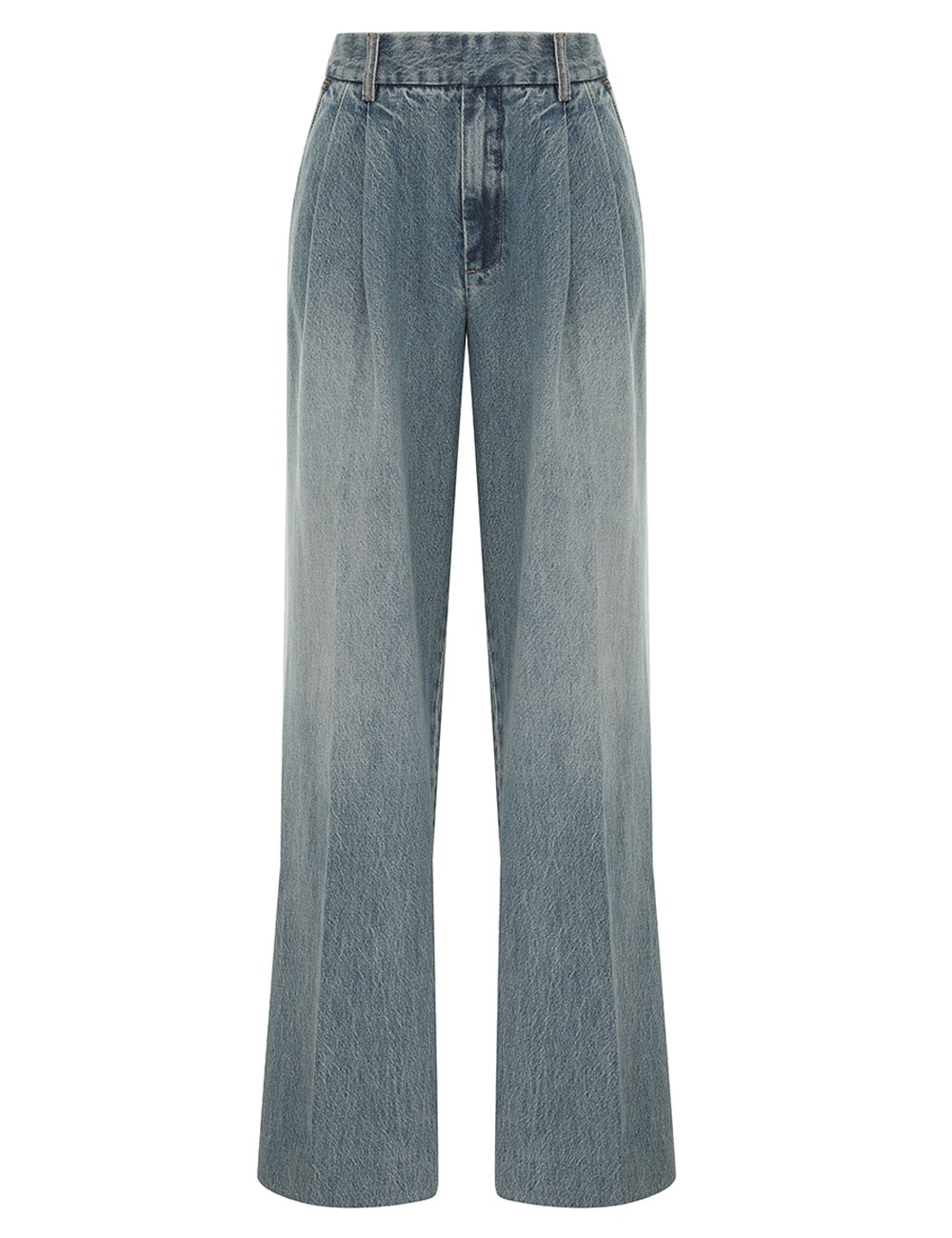 ITEM DETAILS The Illustration Denim Pant in Neptune from our Fall 2024 Collection, In Illustration. A denim straight leg pant featuring deep tucks across centre front with a front leg crease, belt loops and side seam pockets. - Denim full-length pant - Side seam pockets - Mid waist - Front fly with hook and eye - Back welt pockets - Deep tucks at front Runway: This style was featured on the Fall 2024 Runway. Style Code: 0305PF241 SIZE DETAILS 0P 0 1 2 3 4 Length 39 42.1 42.5 42.5 42.9 43.3 Waist 28.3 29.5 31.5 33.5 35.4 37.4 Hip 39 40.9 42.9 44.9 46.9 48.8 Slim through waist and thigh Full-length, mid waist This garment fits true to size Available in size 0P, suited to clients who are under 5'3"/ 160cm Model is 5'9.5"/178 cm, bust size 32C/10C and wears a size 0 Item measurements are in inches. CARE INSTRUCTIONS Main: 100% cotton pocketing: 86% polyester, 14% cotton Gentle cold machine wash separately with mild detergent Remove detachable trims and accessories prior washing Do not soak or bleach Dry without delay away from direct sunlight or heat Do not tumble dry Cool iron on reverse side with protective cloth Do not spot clean Dry cleanable code p Always check the garment care label for specific care instructions.