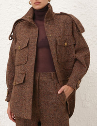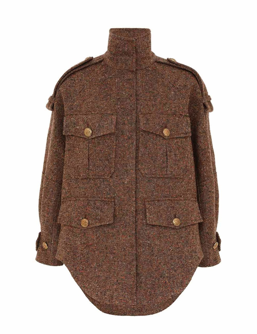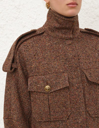 ITEM DETAILS The Illustration Tweed Jacket in Brown Multi from our Fall 2024 Collection, In Illustration. A relaxed fit jacket featuring front pocket detailing, raglan sleeves and a stand collar. - Tweed Jacket - Stand collar - Button detailing throughout - Front patch pockets - Fully lined Runway: This style was featured on the Fall 2024 Runway. Style Code: 0718CF241 SIZE DETAILS XS S M L Length 33.1 34.3 35 35.4 Bust 47.6 49.6 53.5 57.5 Sleeve 30.7 32.3 33.1 34.3 Relaxed fit This garment fits true to size Model is 5'11"/180 cm, bust size 34B/12B and wears a size S (equivalent to size 0) Item measurements are in inches. CARE INSTRUCTIONS Main: 30% wool, 25% polyester, 25% recycled polyester, 15% silk, 5% other fibres contrast: 52% wool, 48% silk lining: 75% viscose, 25% silk Dry clean code f (hydrocarbon only) inside out in a protective bag Remove detachable trims and accessories prior to cleaning Cover to protect hardware Cool iron with protective cloth Do not spot clean Always check the garment care label for specific care instructions.