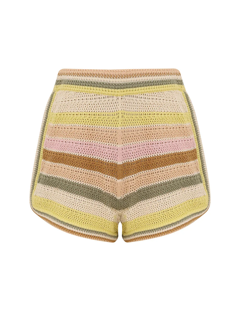 ITEM DETAILS The Indra Stripe Crochet Short in Multi from our Summer Swim 2026 Collection. A knit short featuring an elasticated waistband and crochet pattern. - Cotton fabric - Mid-rise waist - Slip on style Style Code: 9189ASS262 SIZE DETAILS 0P 0 1 2 3 4 Length 27 29 30 31 31 32 Waist 62 64 70 76 80 86 Hip 82 86 92 98 102 108 Inseam 8 8 8 8 8 8 Elasticated waist for a flexible fit This garment fits true to size Available in size 0P, suited to clients who are under 5'3"/ 160cm Model is 5'9.5"/178 cm, bust size 32C/10C and wears a size 0 Item measurements have been rounded to the nearest cm CARE INSTRUCTIONS 100% cotton Dry clean only code f (hydrocarbon only); Remove any detachable trims prior to dry cleaning; Cover to protect trim; Iron in low temperature with protective cloth; Do not spot clean; Store garment flat do not hang Always check the label or care card for specific care instructions.