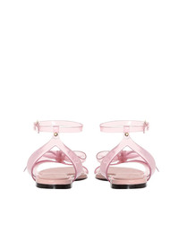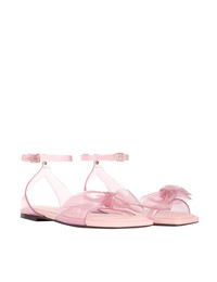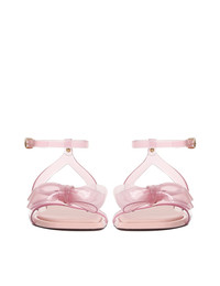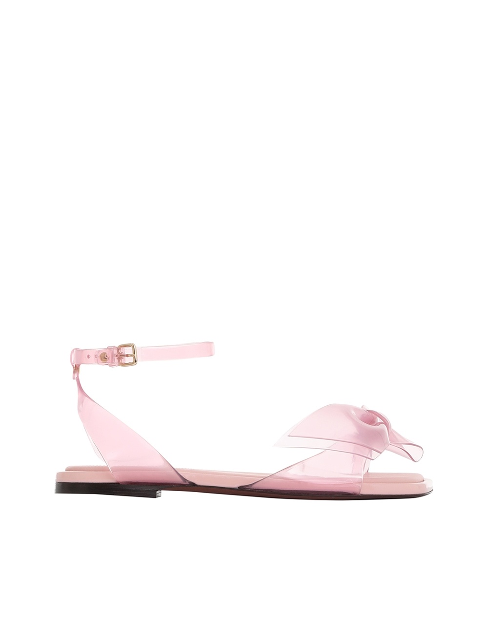 ITEM DETAILS The Jelly Bow Sandal in Fondant from our Spring 2023 Collection, Wonderland. A leather and PVC flat sandal featuring a feminine bow detail. - Moulded PVC upper - Asymmetric toe strap with a PVC bow - 100% leather insole - Open square toe - Buckle fastening - Made in Italy Style Code: 4526S23 STYLING Style the Jelly Bow Sandal with a mini skirt and blouse for a feminine look. SIZE DETAILS This shoe fits true to size, we recommend you select your normal size. CARE INSTRUCTIONS 100% pvc 100% calf leather sock lining 100% calf leather outsole Delicate care Due to the delicate nature of this material please take Extra care with general wear, and in particular sharp objects which may damage the material. Please follow all cleaning instructions for this material as directed on the care card. Leather care This item was handcrafted using genuine leather. Leather can alter or stain if in contact with humidity or atmospheric agents. Marks or irregularities in natural hides can appear in even the most luxurious skins. These are naturally occurring features and should not be thought of as imperfections. On occasion leather can stain clothing or other objects it comes into contact with. To maintain in best condition, avoid direct exposure to light and heat, water, oils, perfume and cosmetics and store at room temperature. Always check the garment care label for specific care instructions.